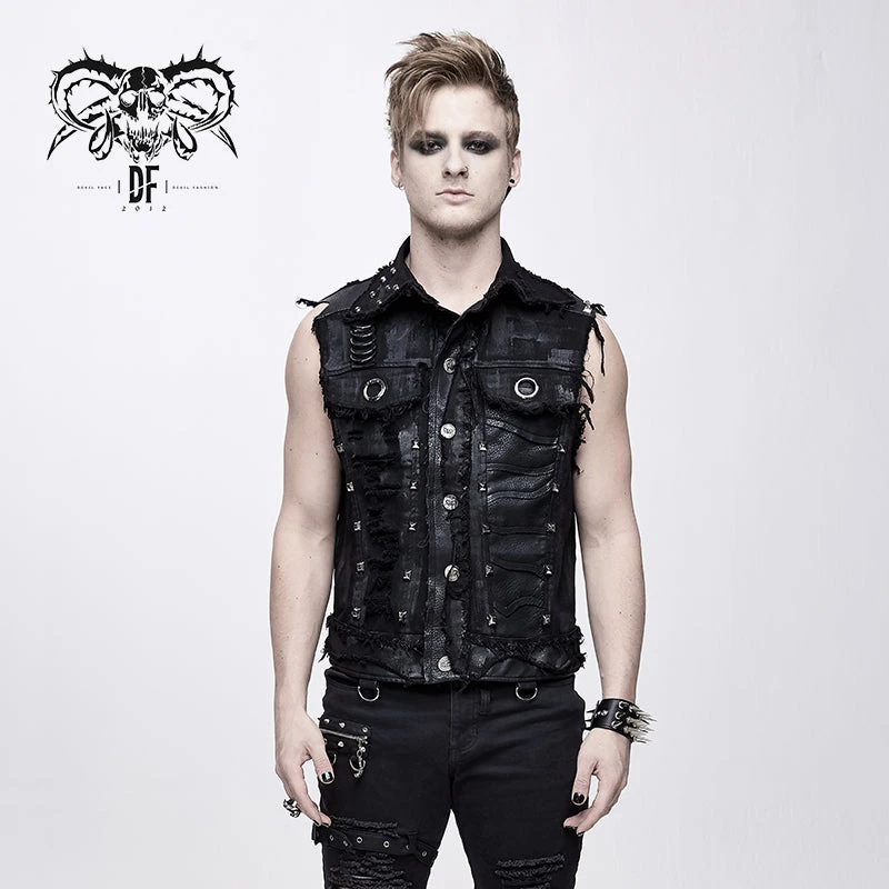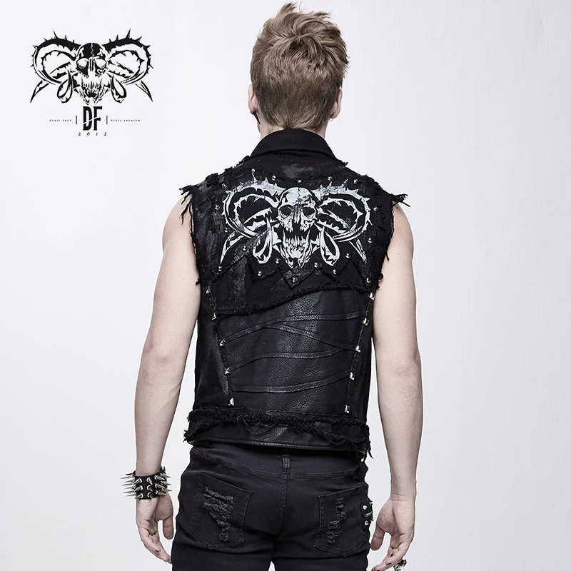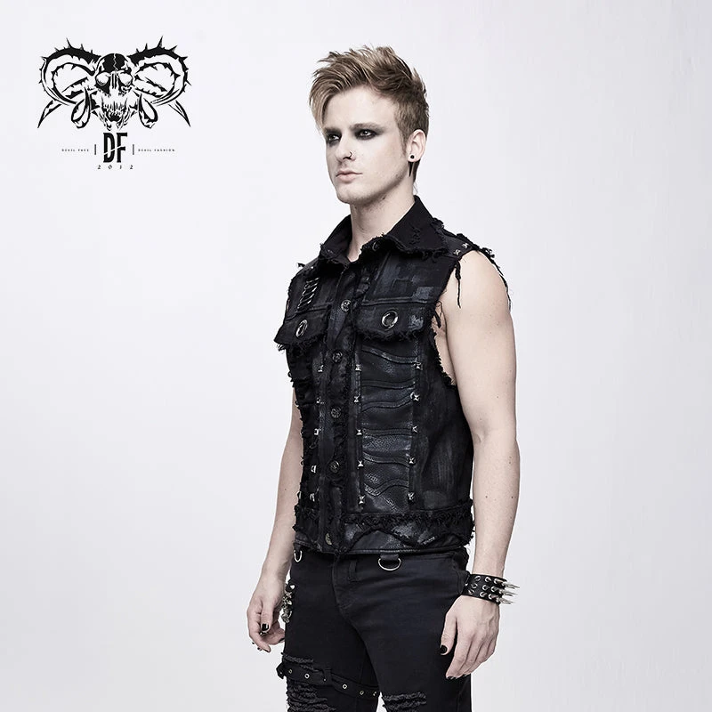 Dramatic, eye-catching, and brilliantly bold; the Warlord Waistcoat turns any outfit into something amazing! With the rough-look weathered black denim and torn details adorned in silver D-rings and studs, and featuring a large logo print on the back, this vest is not for the shy among us! Showcasing your Gothic aesthetic in a not-so-subtle way, you’ll be making all your grunge fashion dreams come true at every metal concert, festival, and club appearance you make!