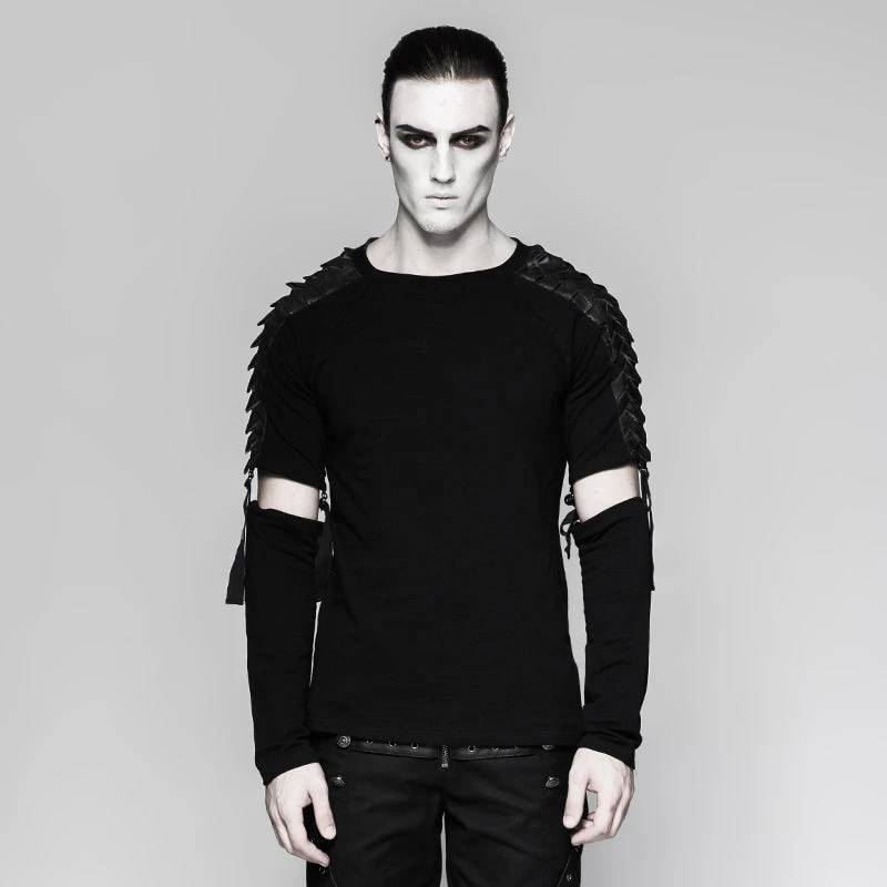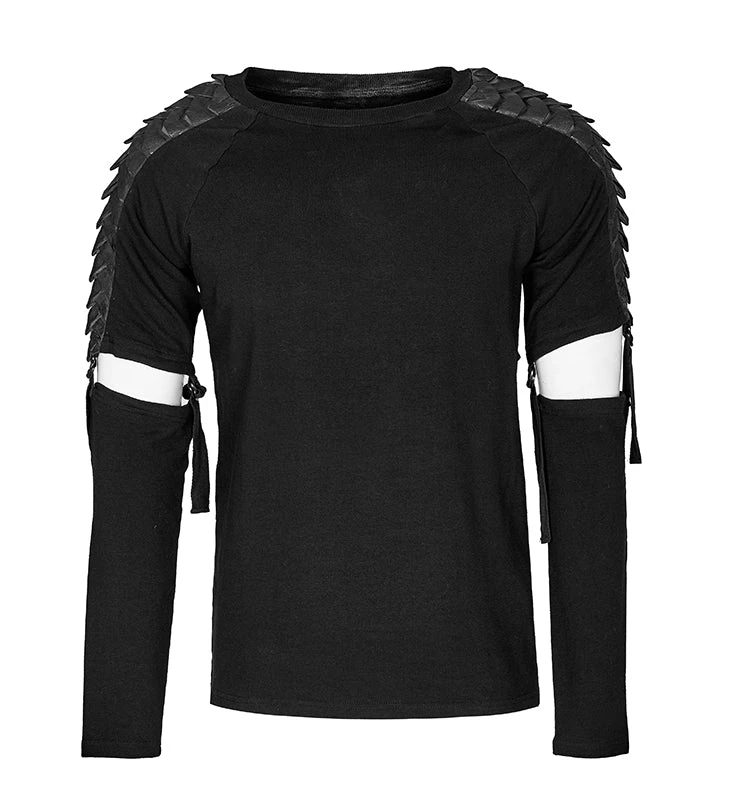 Like the scales protecting a dragon from attack, the overlapping design of the leather panels decorating the shoulders of this Punk Rave Armour Top are the perfect mix of dramatic and beautiful!