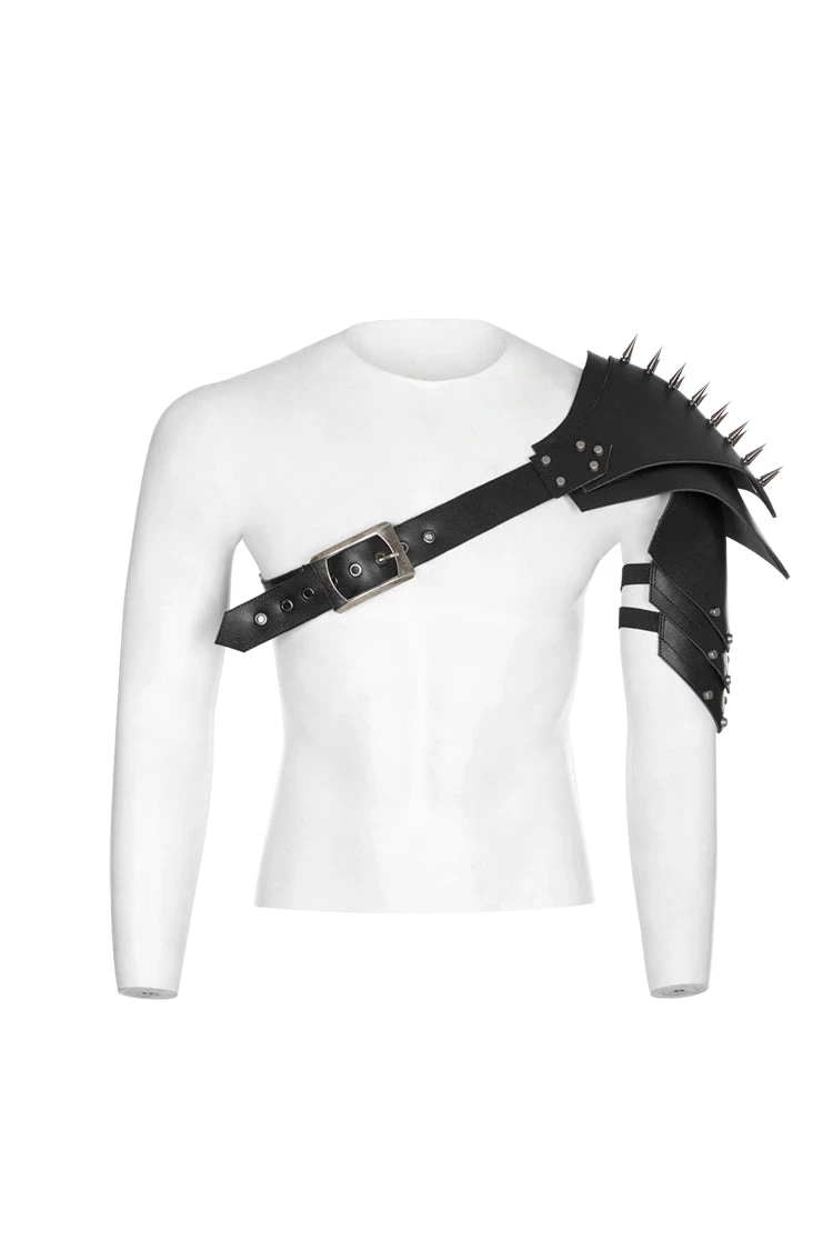 Black vegan leather with truly impressive silver studs and sharp peaks create an interesting and imposing shoulder armor that will make your enemies quiver with fear! Adjustable straps mean your armor is comfortable and fitted perfectly, allowing you to add a variety of accessories to your look or leave it as it is to be exactly what you need in every scenario!