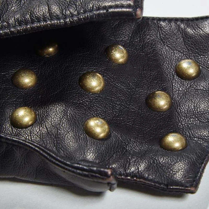 Worn on its own or as a pair, this black leather and bronze rivet adorned glove is one that will fast become a favourite for a variety of your style needs.