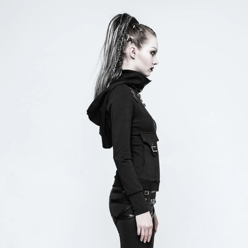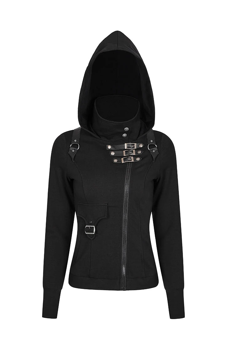 Superbly soft and comfortable, delightfully decadent, and gorgeously Gothic, the Trinity hoodie is as functional as it is stylish. A strong zip connects to strips and snaps that surround your neck with a soft collar. Two real pockets and stylish buckles adorn Trinity. The cute hood will keep your head warm on the chilliest of days.