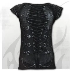 - Adjustable corset style ties in front