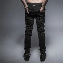 Fitted but with a slight stretch for comfort, these black leather-look material long men’s trousers are ideal for cosplay, costume, party, festival, and everyday wear! Perfect for a Witcher, these trousers will have you feeling like the White Wolf himself and are sure to be a hit! With added details such as the skull buttons at the waist, and the extra straps on the outer thigh, these pants are versatile and sure to suit your Goth, Post-Apocalyptic, Dystopian, and Fantasy theme outfits!